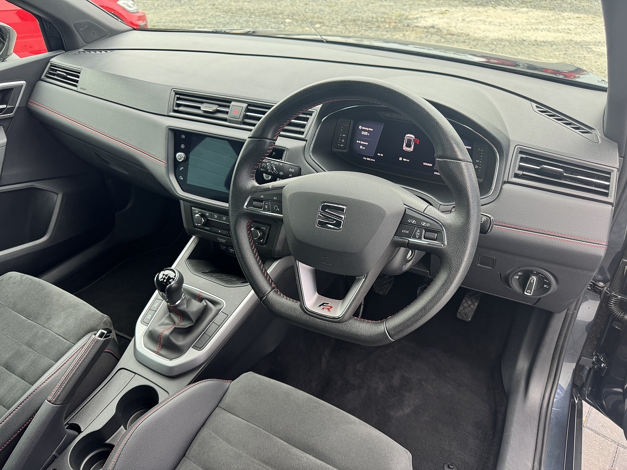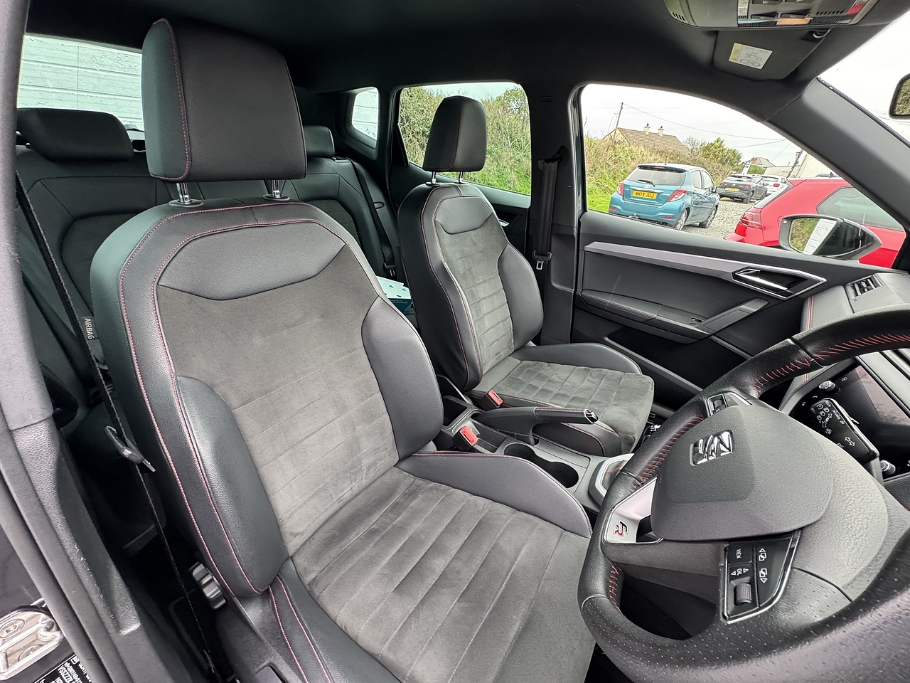 • Perforated Leather Flat-Bottomed Steering Wheel with Red Stitching and FR Logo with Leather Gear Knob